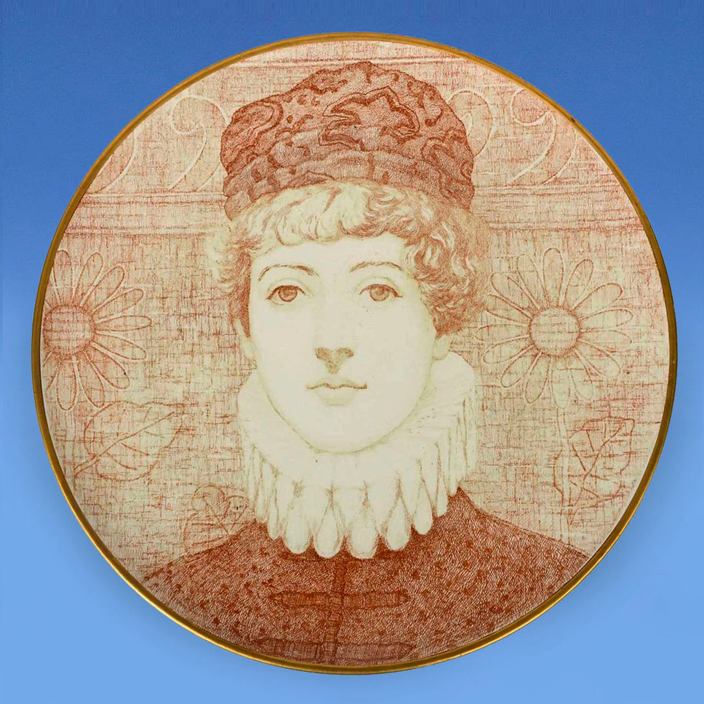 An Aesthetic Movement Ashworth Pottery wall charger of Ellen Terry c.1880