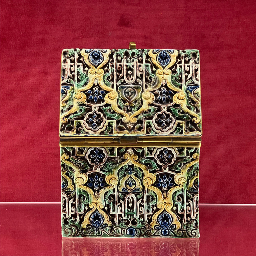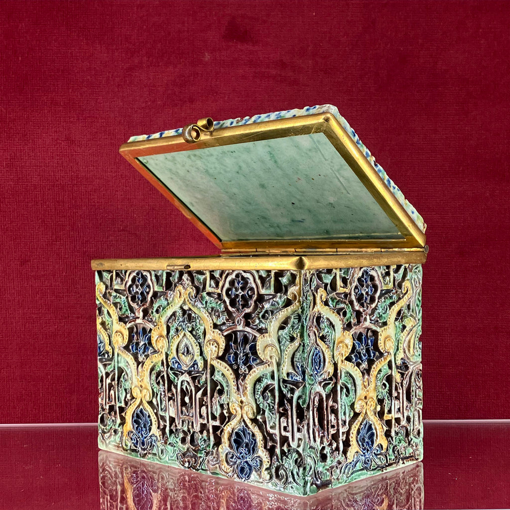 Rare, Small Victor Barbizet Majolica Alhambra Box c.1865